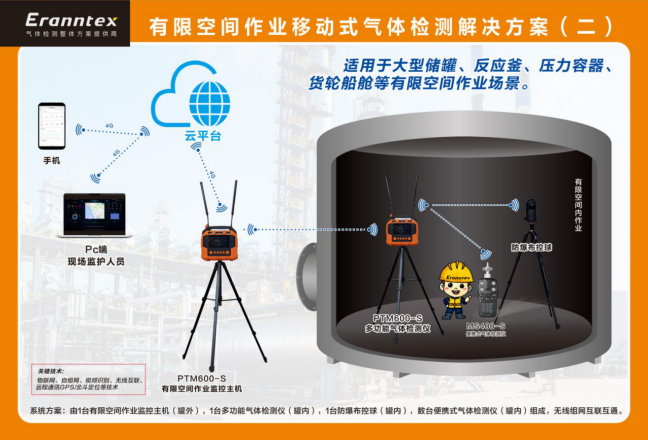 針對大型儲罐、反應釜、貨輪船艙等有限空間的高風險作業(yè)場景,逸云天打造了集成多項前沿技術(shù)的移動式檢測方案。無論是復雜密閉環(huán)境中的氣體異常,還是作業(yè)人員的實時狀態(tài),都能被精準捕捉并及時反饋,從源頭降低意外風險,為受限空間作業(yè)提供全流程安全保障。