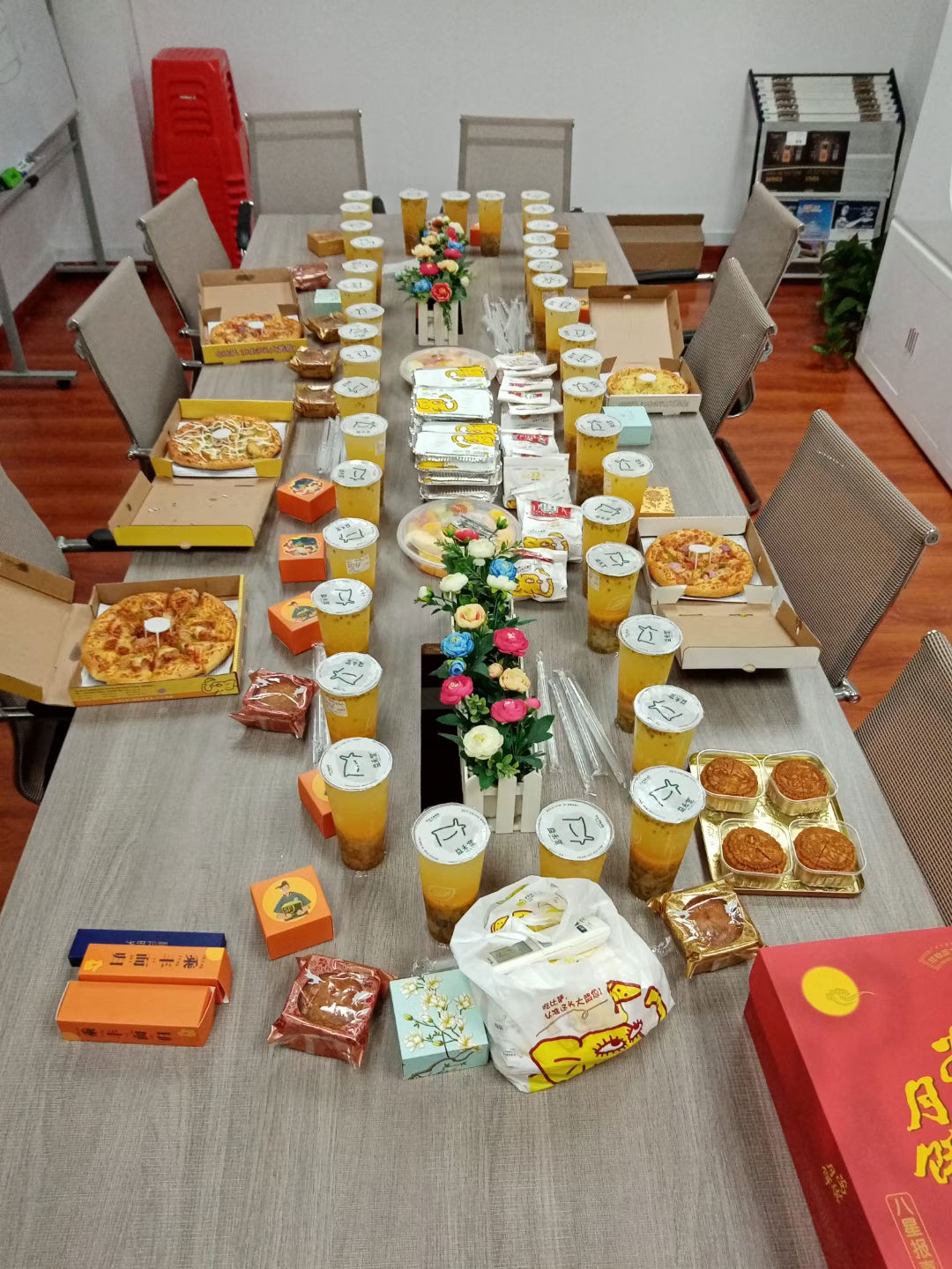活動(dòng)開(kāi)始后,公司各部門同事積極參與,下午茶營(yíng)養(yǎng)豐富、品種多樣,有披薩、月餅、燒烤、飲料等。拿到暖心的下午茶點(diǎn)心,個(gè)個(gè)露出了開(kāi)心的笑容。
