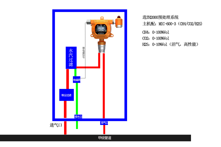 整個(gè)智慧社區(qū)沼氣在線(xiàn)監(jiān)測(cè)系統(tǒng)由供電單元、采樣單元、樣氣處理單元、傳感器檢測(cè)單元、數(shù)據(jù)處理單元、顯示單元和傳輸單位組成。供電單元負(fù)責(zé)為整個(gè)設(shè)備提供電能;采樣單元通過(guò)采樣泵將沼氣樣品抽入到傳感器檢測(cè)單元進(jìn)行檢測(cè)和分析;樣氣處理單元負(fù)責(zé)將沼氣樣品中含有的水分和灰塵過(guò)濾掉;傳感器檢測(cè)單元負(fù)責(zé)對(duì)沼氣樣品中不同氣味成分的識(shí)別分析;數(shù)據(jù)處理單元通過(guò)各傳感器的檢測(cè)數(shù)據(jù)后,利于逸云天獨(dú)有的大數(shù)據(jù)沼氣模型進(jìn)行分析計(jì)算,得出精確的內(nèi)部工程數(shù)據(jù);顯示單元將的內(nèi)部的工程數(shù)據(jù)以淺顯易懂的方式呈現(xiàn)出來(lái);傳輸單位通過(guò)有線(xiàn)或無(wú)線(xiàn)將最終數(shù)據(jù)遠(yuǎn)程傳輸?shù)江h(huán)保局、控制室和云平臺(tái)等。